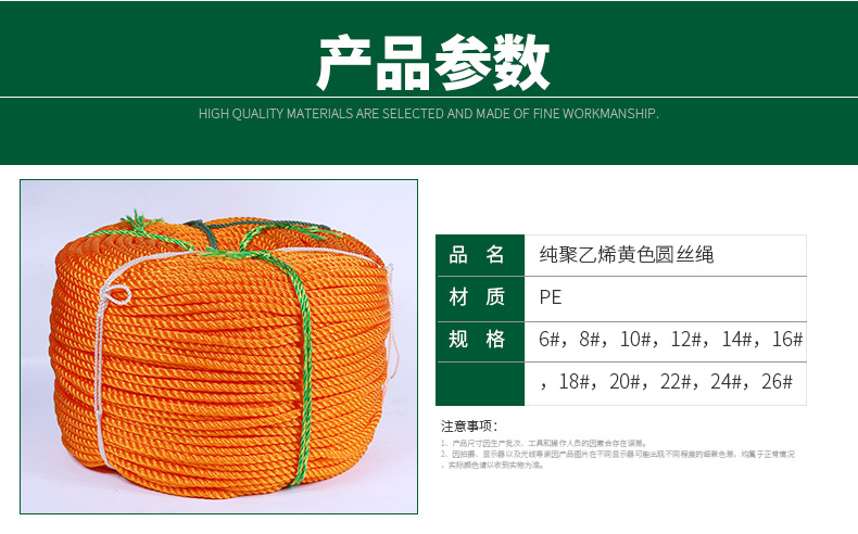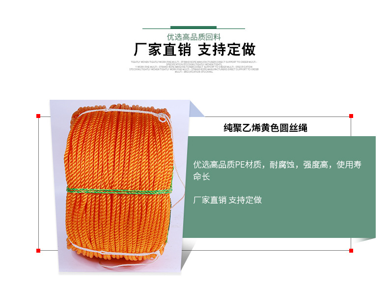 黃色圓絲塑料繩 戶(hù)外作業(yè)PE尼龍繩 黃繩 剎車(chē)繩